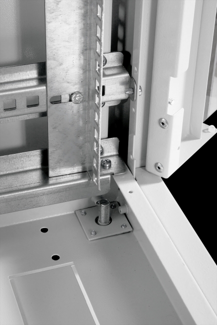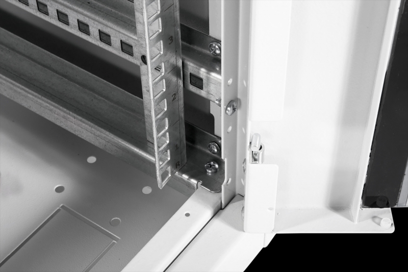 Напольный шкаф серии ШТК-ЭКОНОМ предназначен для размещения активного и пассивного телекоммуникационного оборудования, в офисных и закрытых промышленных помещениях. Изделие выполнено в системе несущих конструкций серии 482,6 мм (19’’) по ГОСТ 28601.2-90 (МЭК 297). Шкафы выполнены в климатическом исполнении УХЛ 4.2 по ГОСТ15150 и предназначены для эксплуатации в закрытых помещениях при температуре от плюс 5°С до плюс 40°С, при верхнем рабочем значении относительной влажности 80% при температуре 25°С. Шкаф в полностью собранном виде (с установленными дверями и боковыми стенками) имеет степень защиты IP20, обеспечиваемую оболочкой. Шкаф имеет разборную каркасную конструкцию. Поставляется в разобранном виде в 1-м или 2-х транспортных местах. Каркас состоит из основания, крыши, двух сборных рам, четырех опор двери и двух усилений. Шкаф комплектуется боковыми стенками. Стенки фиксируются точечными замками. Стандартно шкафы комплектуются двумя дверями трех видов: цельнометаллической, с тонированным ударопрочным стеклом, и дверью с перфорацией. Двери фиксируются усиленными точечными замками, имеют как правую, так и левую навеску с помощью штырьковых петель установленных в дверях. В основании и крыше шкафа предусмотрены места для установки вентиляторных модулей серии R-FAN и комплекта щеточного ввода КВ-Щ-55.420А либо двух комплектов щеточного ввода КВ-Щ-55.210А. Основание шкафа укомплектовано винтовыми опорами (ножками), позволяющих компенсировать неровности пола. Доступ для монтажа, коммутации и обслуживания оборудования возможен с четырех сторон, через боковые легкосъемные стенки, переднюю и заднюю двери. Шкаф имеет 4 оцинкованные вертикальные направляющие, регулируемые по глубине. Система заземления входит в стандартную комплектацию. Производитель имеет право вносить изменения в конструкцию изделия без ухудшения его функциональных характеристик. Шкаф выполнен в соответствии с требованиями стандарта IEC 60 297 "Конструкции механические серии 482,6 (19 дюймов)".