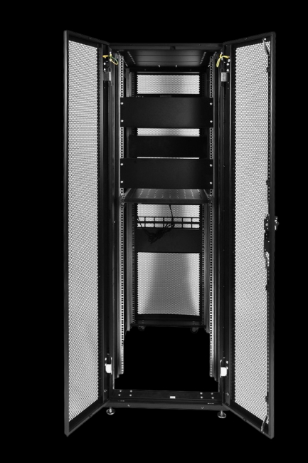 Шкаф телекоммуникационный ШТК-СП предназначен для размещения электронного и электротехнического оборудования , аппаратуры телекоммуникационных систем, передачи и хранения информации в закрытых помещениях. Вид климатического исполнения О4.2 по ГОСТ 15150 с предельными рабочими температурами воздуха при эксплуатации от плюс 1°С до плюс 45°С и относительной влажности не более 80 при 20?С. Шкаф поставляется в полностью собранном виде с установленными металлическими дверями, задней и боковыми стенками, имеет степень защиты, обеспечиваемую оболочкой, IP20. Имеется возможность установки панелей систему несущих конструкций 482б6 мм по ГОСТ 28601.1 (19” по МЭК 297). Шкаф имеет две массивные сварные рамы, соединенные комплектом швеллеров, что обеспечивает повышенную жесткость конструкции. В зависимость от комплектации шкаф может поставляться с передней и задней перфорированными дверьми (одностворчатыми или двухстворчатыми) усиленными боковыми стенками. Двери фиксируются замками с ручкой. Возможно установка двери как с левой, так и справой стороны. Двери имеют возможность быстрого безинструментального снятия и установки. Боковые проемы закрываются двумя боковыми стенками. Стенки фиксируются точечными замками. Крыша имеет заглушенные отверстия под кабельные вводы. Так же в крыше предусмотрены отверстия для крепления кабельных каналов фиксатором КГЛ (в комплект поставки не входит). Нижняя часть – полая, обеспечивающая хороший доступ к коммутациям в подготовленном помещении. В нижней части шкафа можно установить панели различного назначения (например, фальшпол ОС-ШТК-СП-х). Так же в нижней части шкафа установлены регулируемые опоры и транспортировочные ролики для перемещения шкафа без оборудования. Предусмотрено крепление основания шкафа к полу (кронштейны в базовой поставке крепят шкаф к деревянному поддону). Доступ для монтажа, коммутации и обслуживания оборудования возможен с четырех сторон: через боковые стенки, переднюю и заднюю двери. В базовой комплектации шкаф имеет 4 оцинкованные вертикальные направляющие, регулируемые по глубине. Предусмотрена система заземления (провода для заземления всех деталей шкафа входят в комплект поставки). Тыльная часть шкафа стандартно комплектуется вертикальными кабельными органайзерами шириной 116 мм, перфорированными для удобства размещения блоков розеточных (PDU), укладки и фиксации кабелей. В организаторах предусмотрена система отверстий для быстрой безинструментальной установки и снятия различных типов блоков и оборудования.