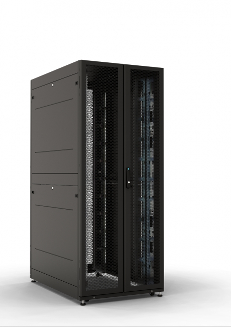 ШТК-СП-42.8.10-48АА-9005, ЦМО Шкаф серверный ПРОФ напольный 42U (800x1000) дверь перфор., задние двойные перфор., черный, в сборе